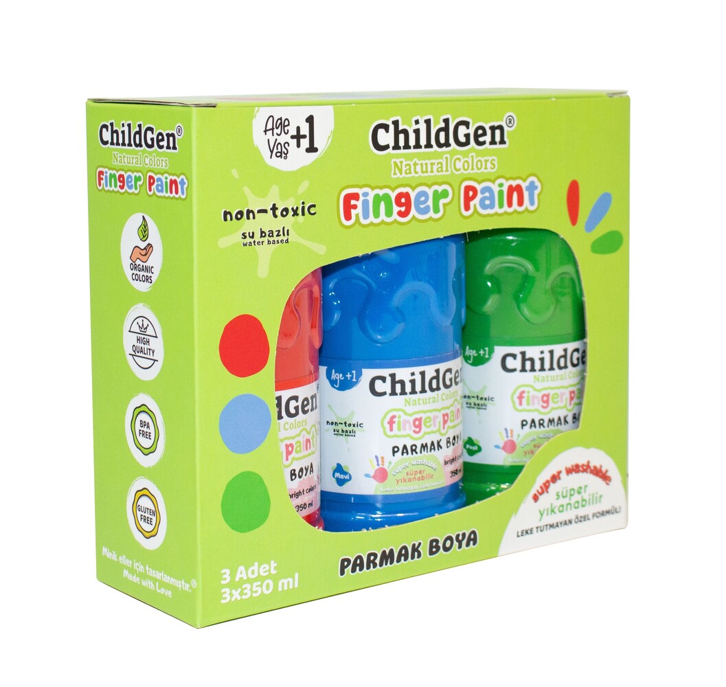 ChildGen Finger Paints are organic, free of harmful chemicals and easy to remove from surfaces thanks to water soluble formula. Safe and harmless for children.