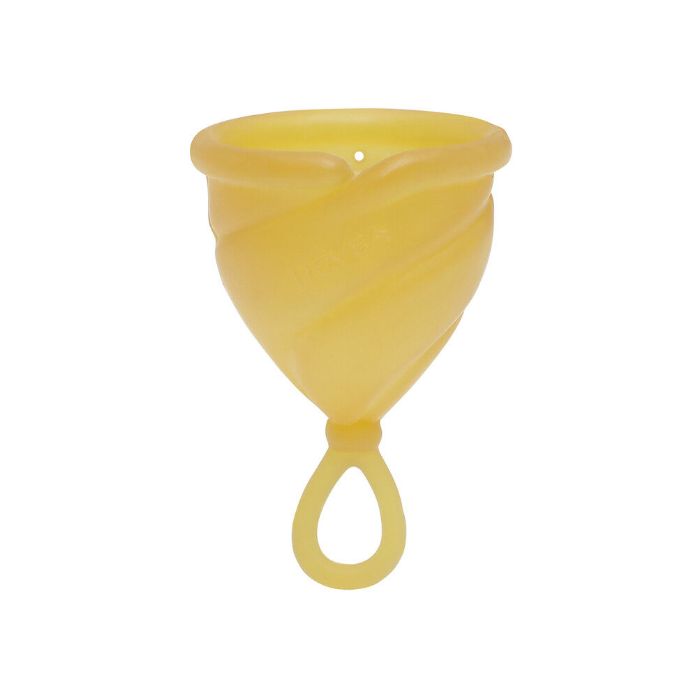 Hevea Loop Menstrual Cup is made of natural rubber, and is therefore completely plant-based and non-toxic. Hevea products do not contain any BPA, PVC, or Phthalates. The Loop Cup is biodegradable, and can be used for 1-2 years. Natural rubber is not only a sustainable choice, but also a very soft and durable material. The unique shape and material of the Loop Cup makes it easy to fold and insert in place. The Loop Cup provides protection for up to 12 hours! The package includes a handmade cotton storage bag.