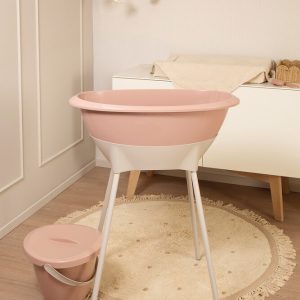 Ammeteline nostaa Luma ammeen juuri oikealle työkorkeudelle, mikä tekee vauvan kylpyhetkistä ergonomisia ja mukavia. Amme lukittuu telineeseen helposti ja turvallisesti – käyttö on helppoa alusta loppuun.