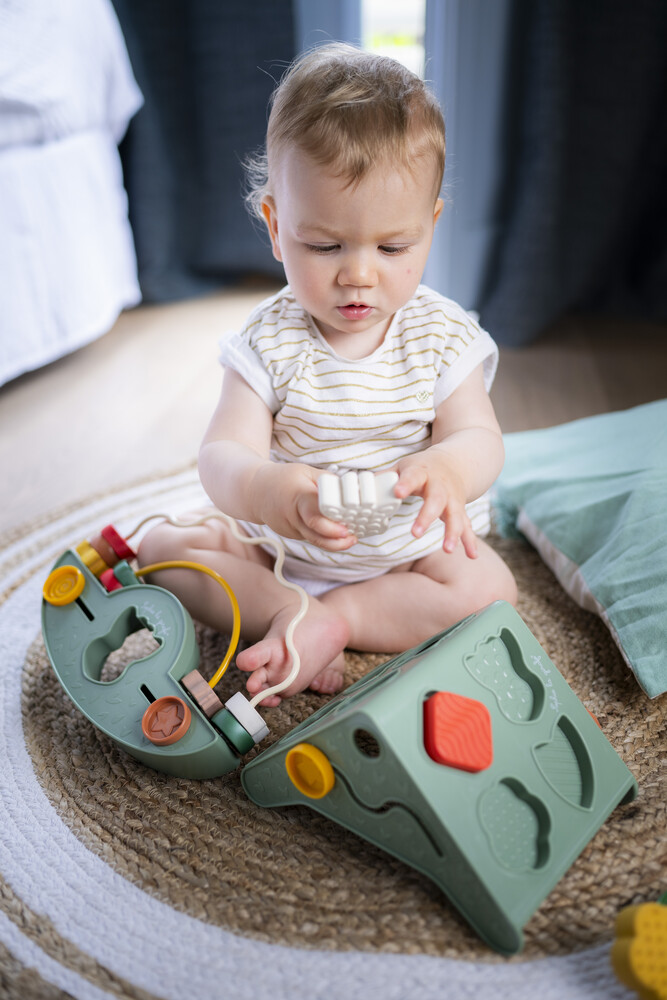 – A rocking abacus: Perfect for developing manual dexterity and precision by moving the beads, while also awakening baby′s curiosity with the rocking effect.