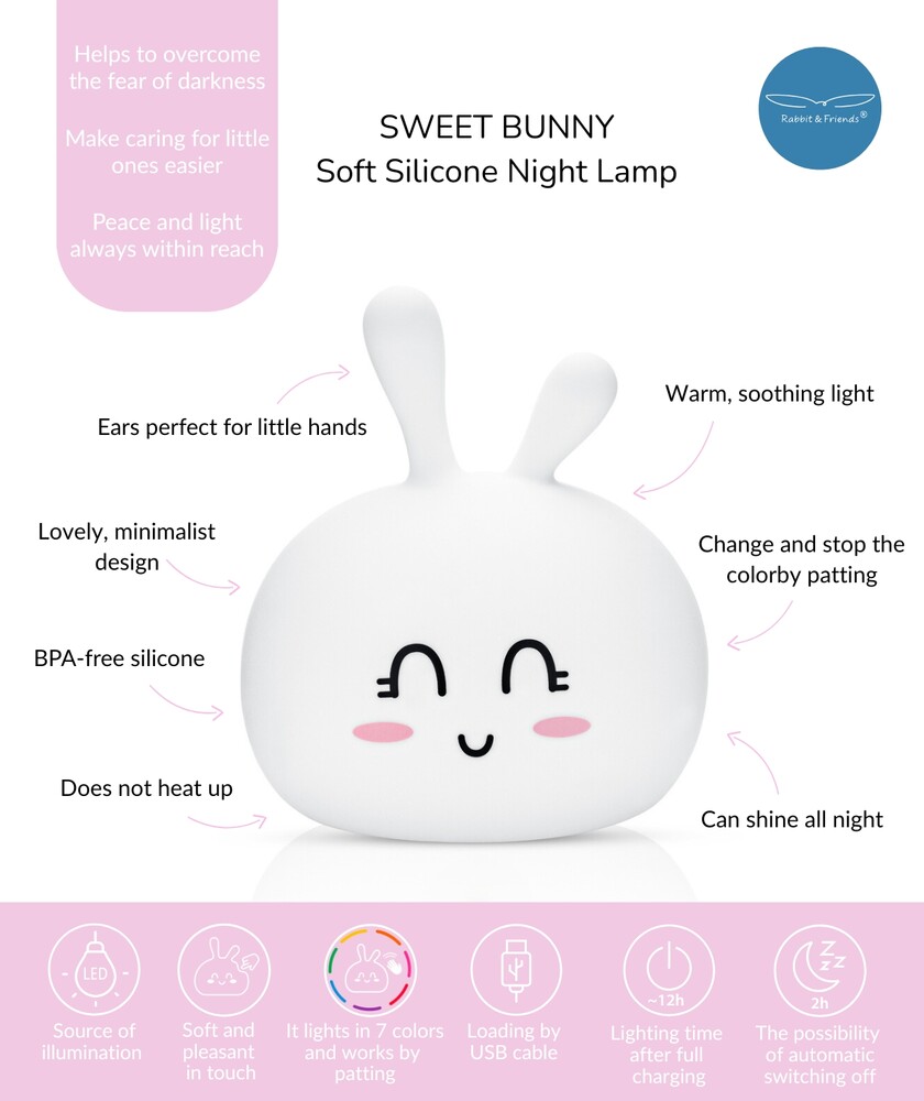 Sweet Bunny Night Lamp lights up the surroundings with a warm and friendly light. Its presence makes children feel safe at night and it makes it easier for parents to look after and care for them.