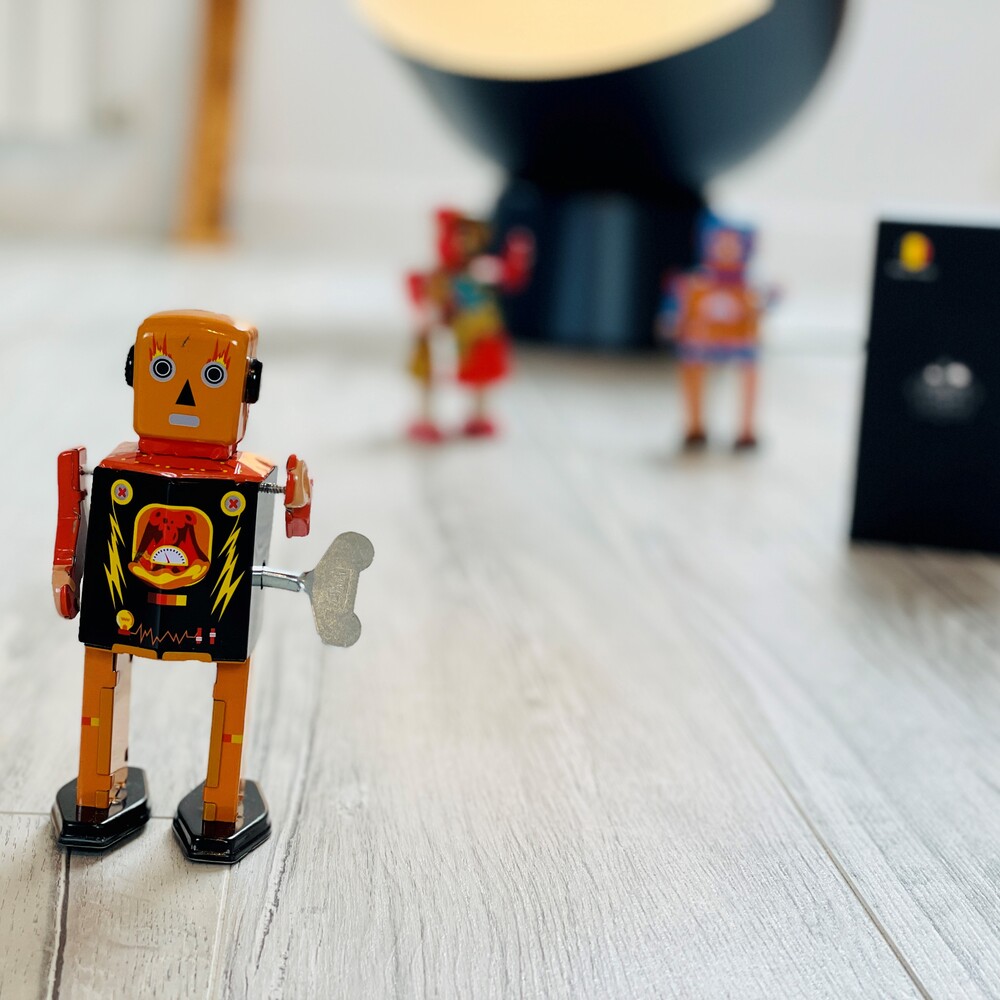 Mr & Mrs Tin robots are delightful both as a toy or an ornament. With the tin robot, you get a key that you can use to make the robot move on its own! Mr & Mrs Tin products are handmade in a small toy factory HaHa in Shanghai. There′s only 2000 robots made of each design in the whole world, which makes this tin friend a true collectible. The robot is delivered in a stylish gift packaging, where you′ll also find the key and the robot′s origin story. Inside the packaging you can also find the robot′s unique serial number. This product is a perfect gift for both kids and adults. Mr & Mrs Tin products are tested for safety and meet the requirements of the global safety regulations.