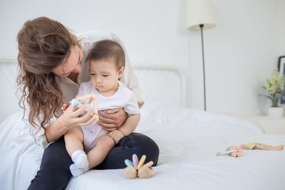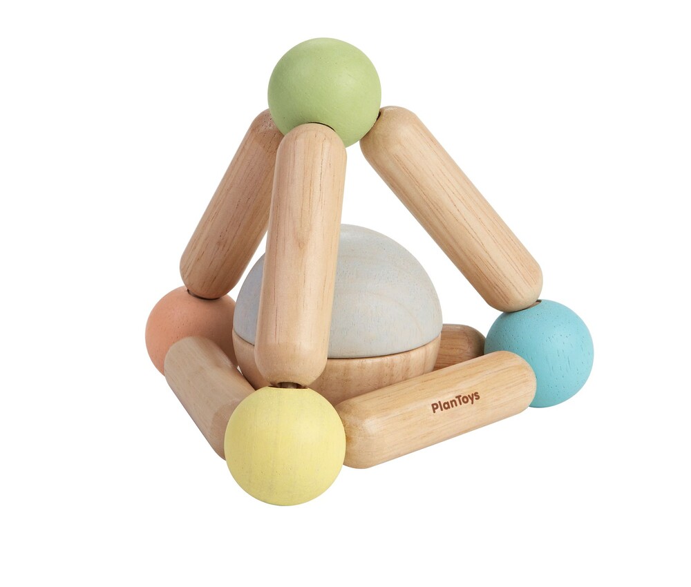 Pastelne haaramislelu arendab beebi peenmotoorikat. Heliseva palli saab lelu külest eemaldada.