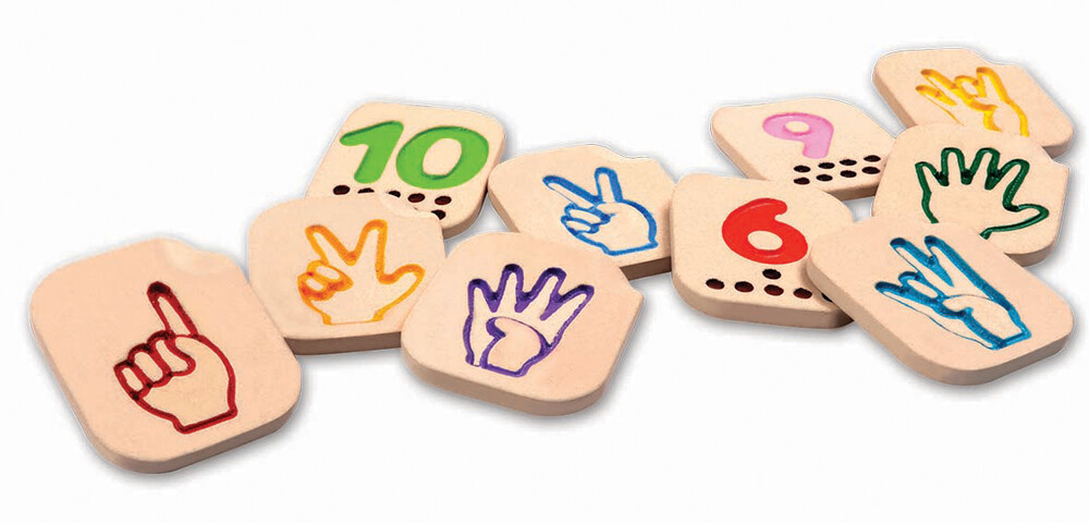 See puuklotside komplekt muudab lihtsustab viipekeele numbrite õppimist. Kopmlekti kuuluvad viipekeele tähistega numbri-klotsid.