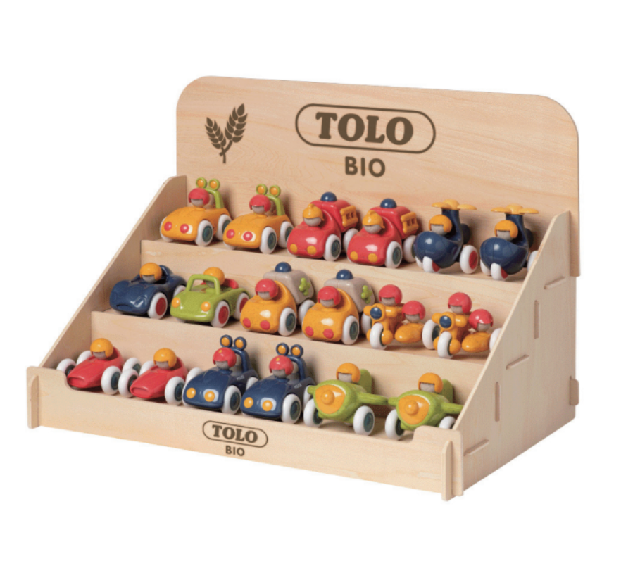 Puinen display 18-20 kpl Tolo Bio First Friends hahmolle tai 18 kpl Tolo Bio Baby autolle