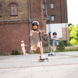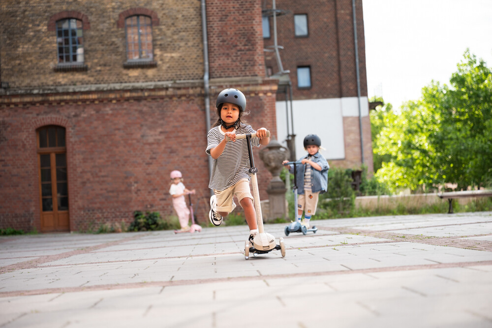 Scoot&Ride Highwaykick 3S Scooter is designed for children aged 3+ or with a height between 96 and 130 cm. Its standout feature is the dual steering system, allowing kids to steer either by traditional handlebar turning or by shifting their body weight, offering greater control and enhanced safety. The handlebar is adjustable to three different heights, so the scooter adapts as your child grows and provides long-lasting riding enjoyment. A newly developed folding mechanism makes it easy to fold the handlebar backward, ensuring simple, compact storage and transport.