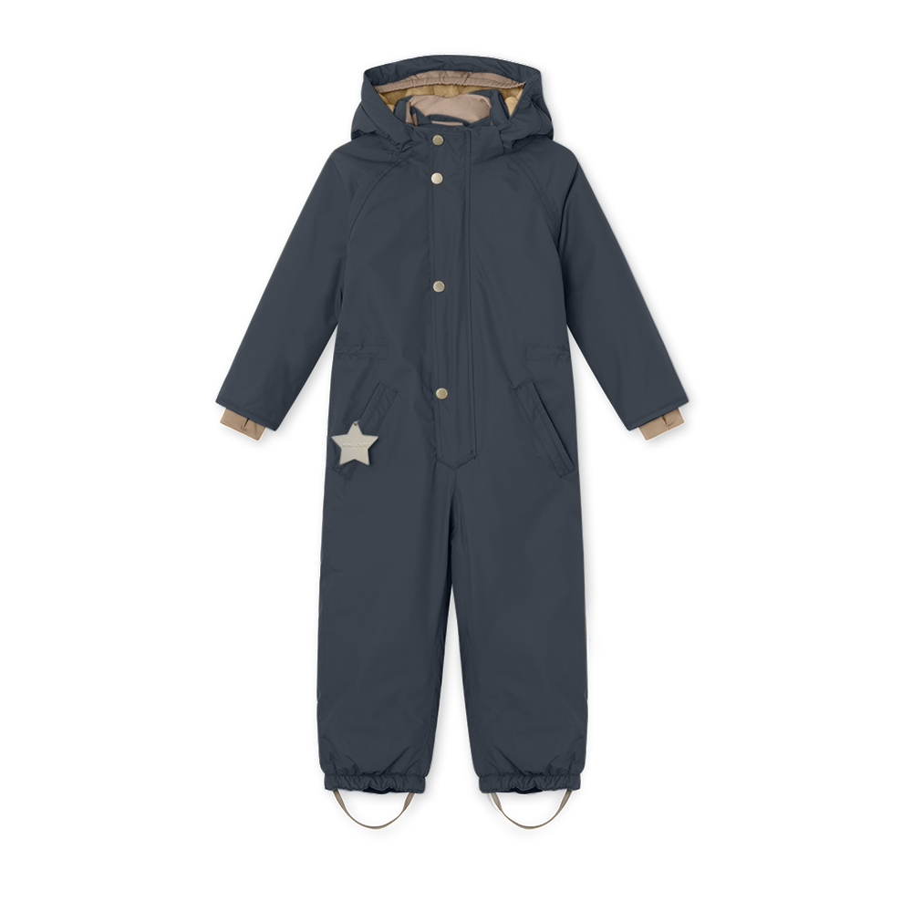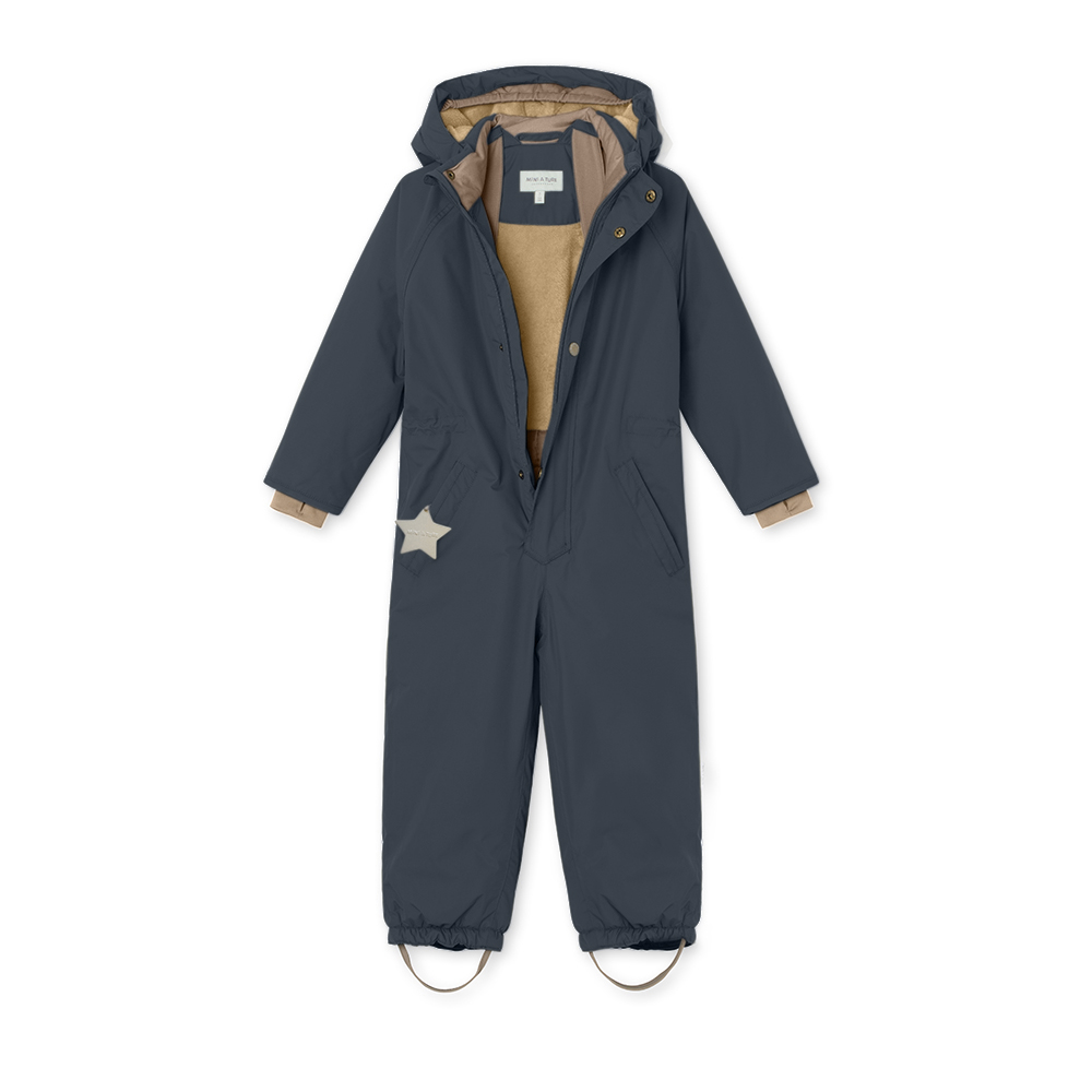 MINI A TURE talvihaalari vanhemmille lapsille. Haalari on 100% tuulen ja vedenpitävä, sekä tarpeeksi lämmin myös kylmimmille talvipäiville. Haalari aukeaa edestä kahdella vetoketjulla. Hupun saa haluttaessa irrotettua haalarista, ja siinä on kiristettävä naru jonka avulla pään saa suojattua tuulelta. Haalarin takaosa on vahvistettu, jotta materiaali kestää varmasti tuntikausien lumisekkailut. Sisältä löytyy henkselit, joten haalarin yläosan voi pukea harteille jos tulee liian kuuma. Haalarin vyötäröä voi kiristää sopivaksi. Lahkeissa on irrotettavat jalkalenkit.